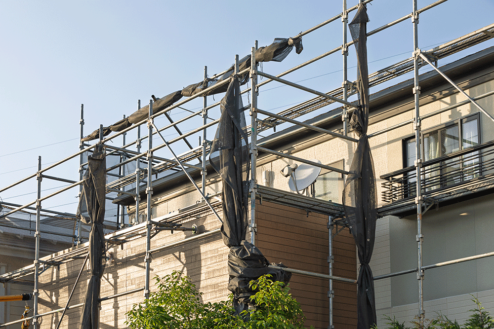 足場工事:建物の高さ・外周・立地条件(駐車可否など)をお知らせいただくとスムーズです。